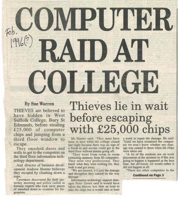 As a demonstration of how valuable the computer equipment was at that time. In the 1990s, the College computers had their 1MB ram chips stolen one night by some thieves who hid on the top floor of Suffolk House until the college was locked up and then they stripped the machines and escaped out of a window.