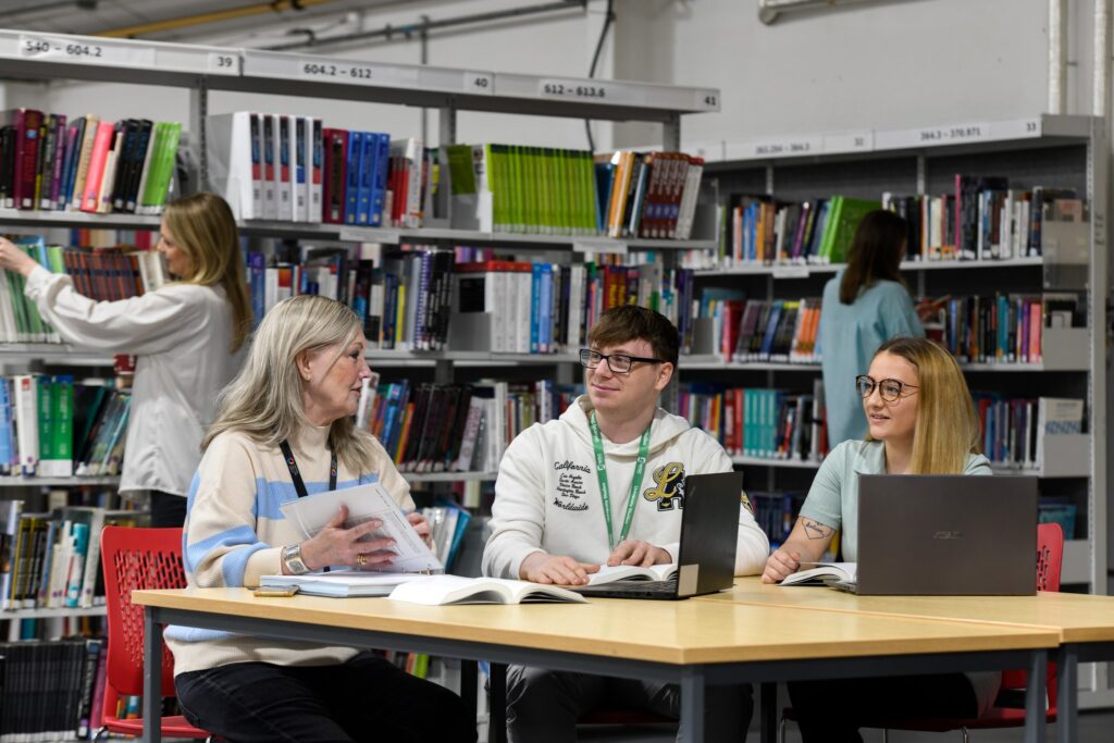 Something that makes me smile is when I was asked to be one of the students to represent my university studies course in the new prospectus in my final year. I was photographed with one of my fellow students and our Lecturer, Penny Stevens, in a mock study session. This was a funny experience, as we all got told off for blinking or looking at the camera. The photos from the prospectus have also been used a number of times in adverts for West Suffolk College and University Studies. I found it quite funny to appear in the college adverts, and I still get people message me to say they have seen me on the College’s Facebook or LinkedIn pages.